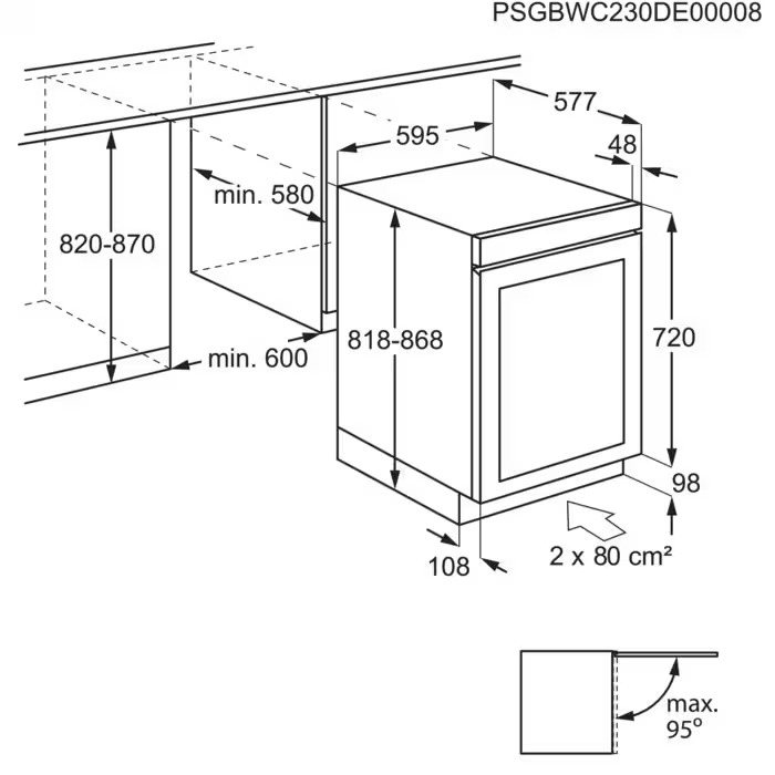 - 595mm × 818mm × 577mm