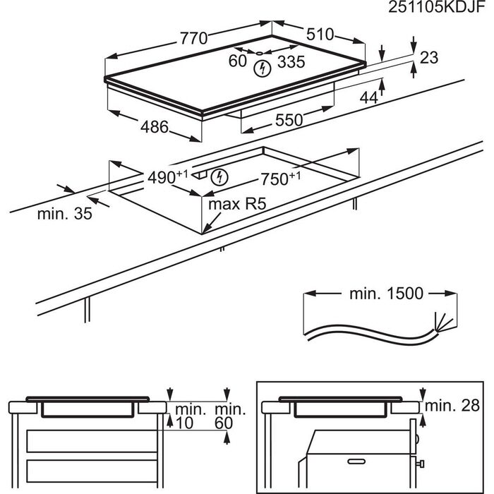 - Jobb első zóna: indukciós, 2300/3200W/210mm